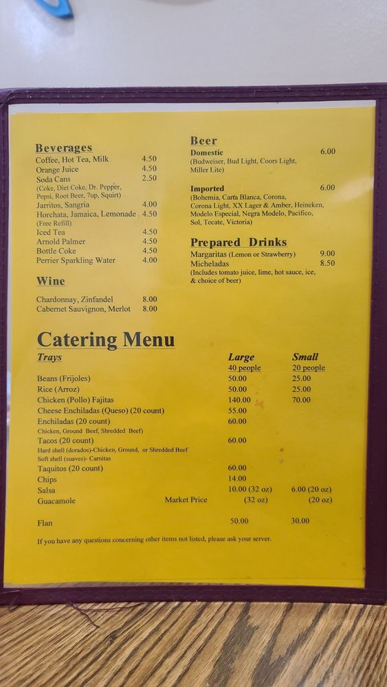Zacatecas Restaurant Menu